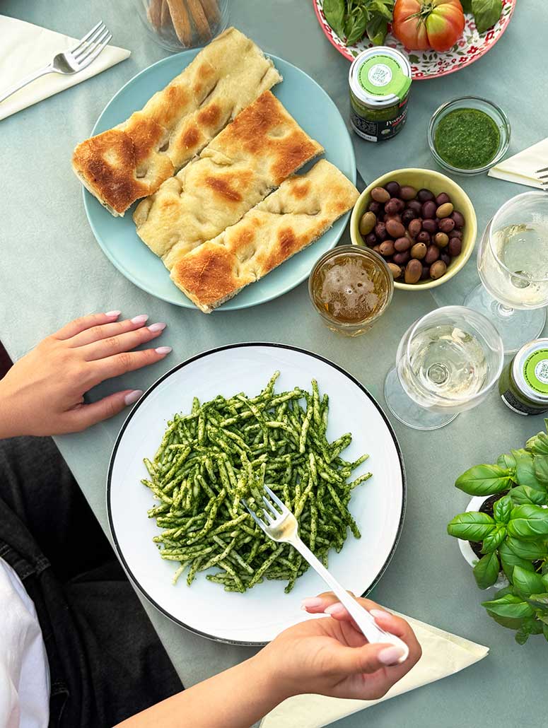 Pinoli: c’è chi giurerebbe che qualche noce renda il pesto straordinario, ma per noi esistono solo i pinoli, proprio come le nostre nonne ci hanno insegnato fin da piccoli.